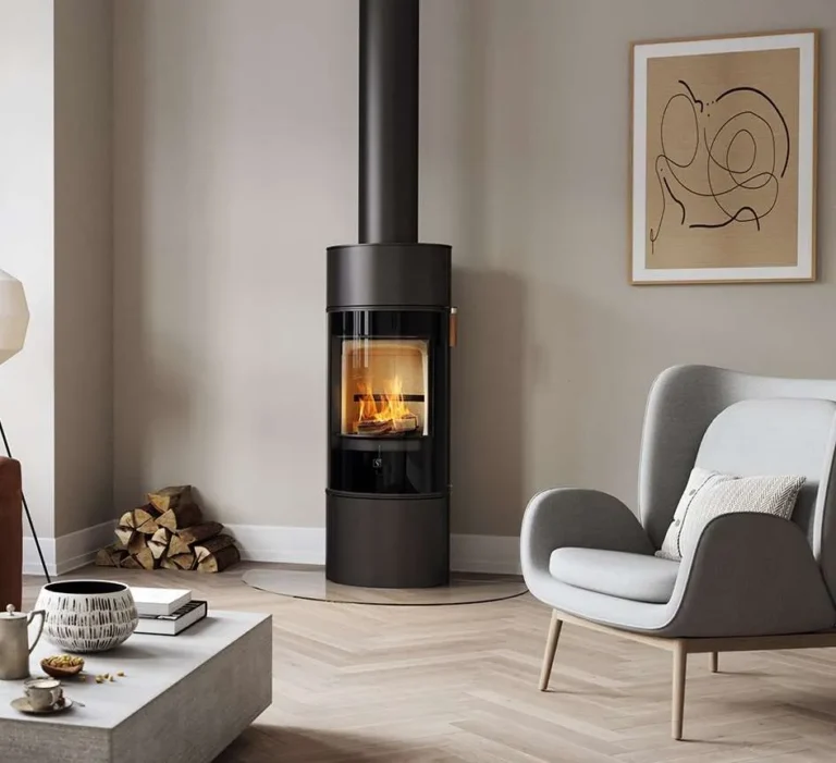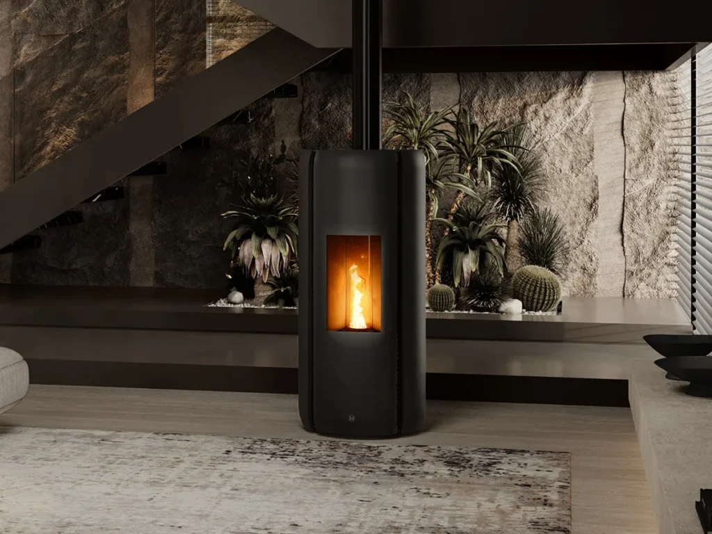 Poêle compact aux formes élancées et épurées.
