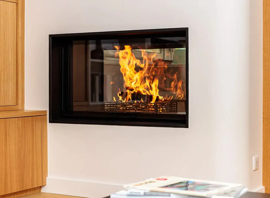 Nous travaillons en trois étapes clés : d’abord, nous sélectionnons le foyer idéal (acier ou fonte, vision à 180° ou panoramique). Ensuite, nous dessinons l’architecture de l’espace (coffrages, niches, banquettes). Enfin, nous choisissons les matériaux de finition (pierre, bois, métal) pour que la cheminée s’intègre parfaitement à votre décoration.