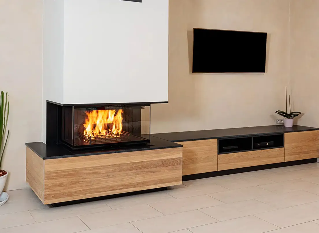 Nous avons récemment créé une installation sur mesure qui marie l’art de l’agencement à la chaleur réconfortante d’une cheminée gaz d’angle.